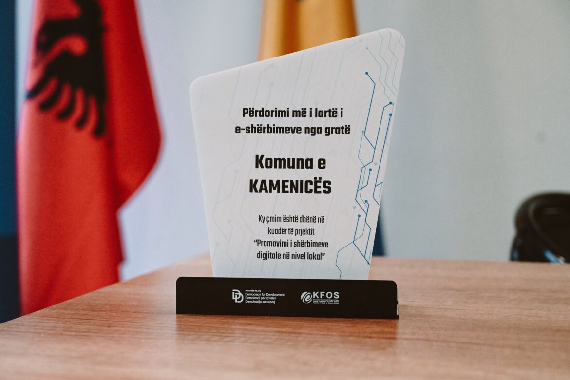 Ky çmim ipet për Komunën e Kamenicës në kuadër të projektit “Promovimi i shërbimeve digjitale në nivel lokal” nga Democracy for Development (D4D) në bashkëpunim me KFOS (Fondacioni i Kosovës për Shoqëri të Hapur).
